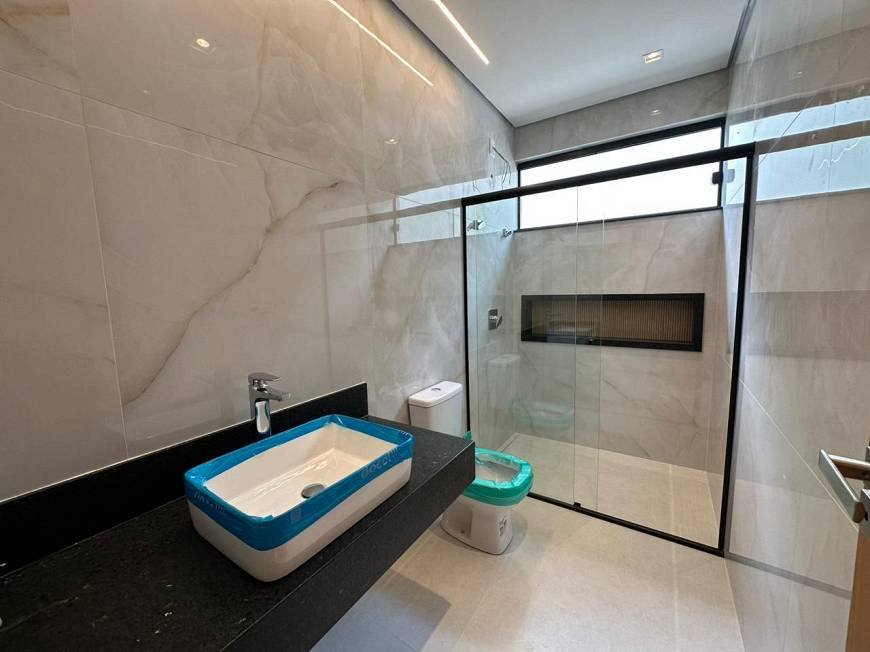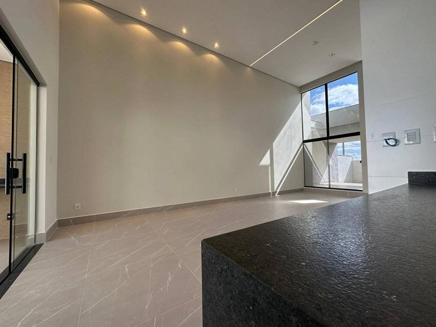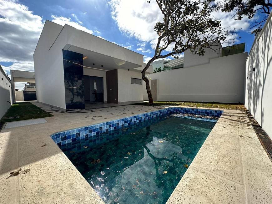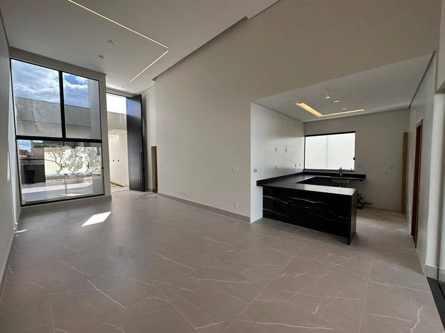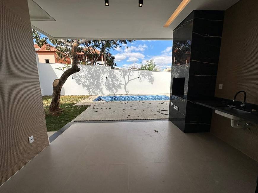 Casa alto padrão estilo Moderno com linda fachada imponente, composta por Sala para 2 ambientes com pé direito duplo e porta pivotante 6m, cozinha americana com total integração com sala e a área gourmet, dispensa, 3 quartos sendo 1 suíte com closet e hidromassagem, espaço gourmet completo com churrasqueira e bancadas em granito, área externa com piscina com preparação para aquecedor e área gramada .
