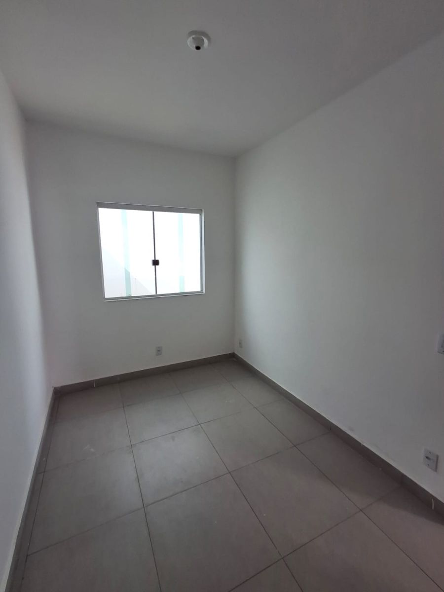 Dois quartos, sala, banho social, cozinha e uma vaga de garagem.